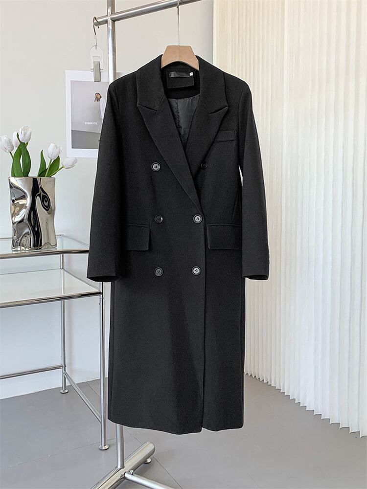 ダブルボタン 秋 ゆったりする カジュアル コート ピュアカラー ロングセクション スーツ