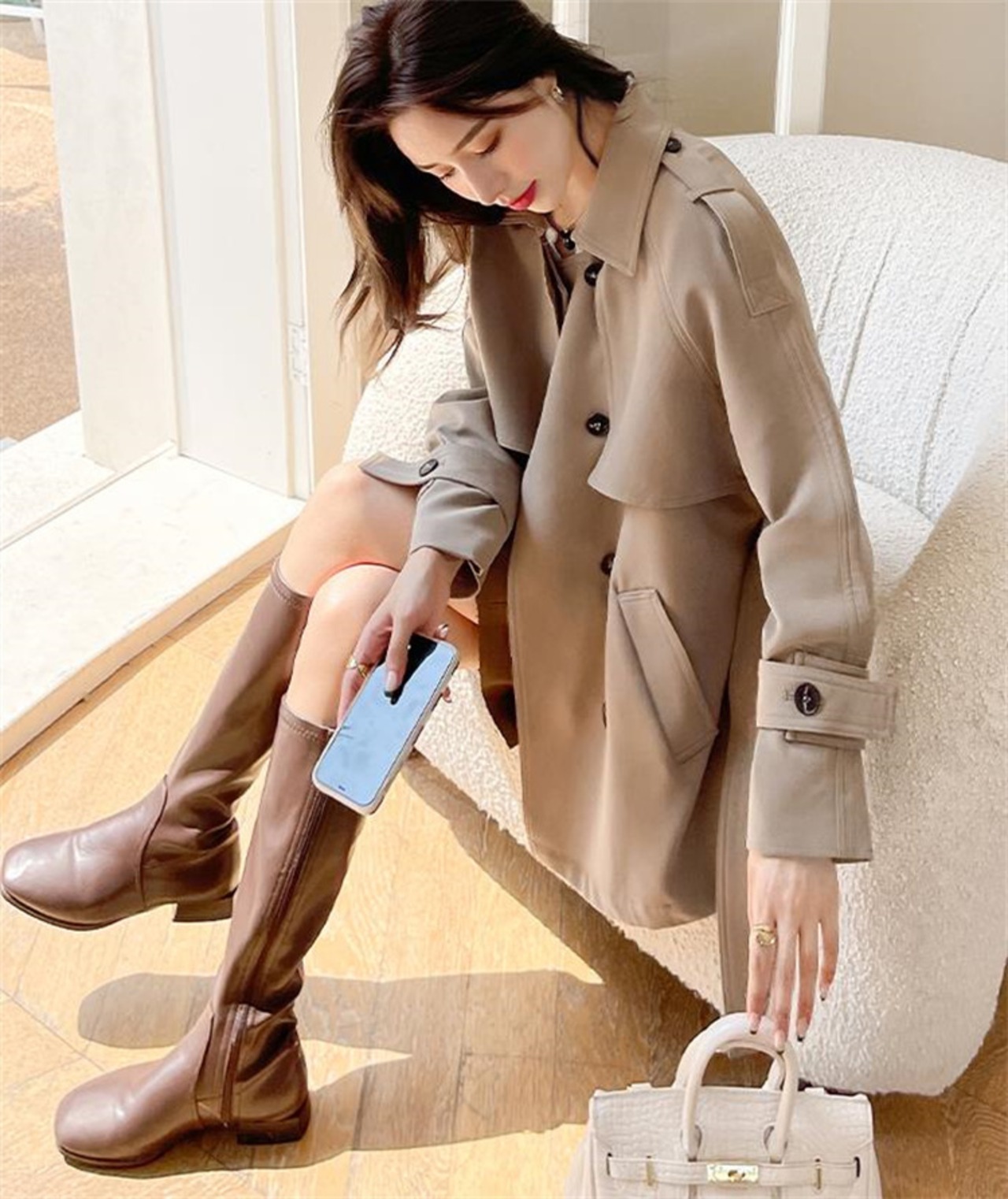 トレンチコート コート 中長セクション ダブルボタン スリム カジュアル