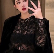 トップス カットソー レース Tシャツ ロンT 細身 スリム タイト ショート丈 レディース