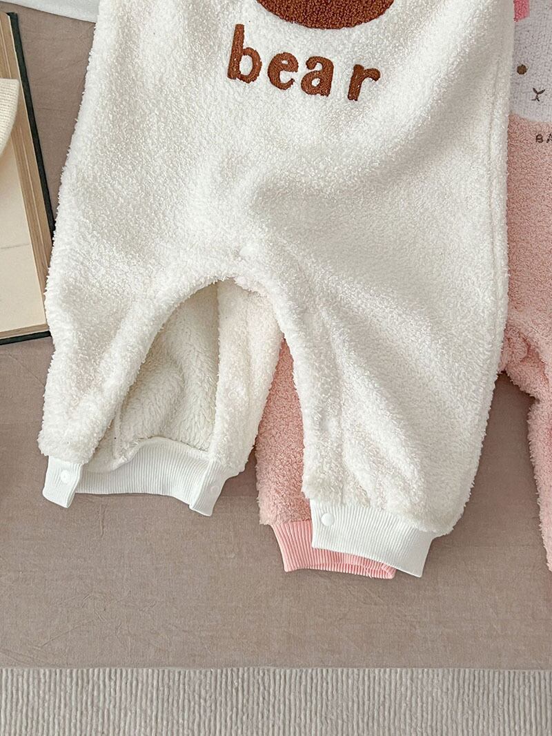 秋冬 ユニセックス 連体服 0-3歳 熊兎 ボア裏起毛 防寒 厚手 ロンパース カバーオール 66-100