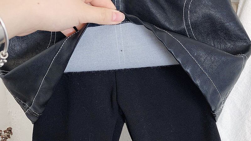 お勧め 秋冬新作 子供服 3-8歳キッズ女の子 レギンス付スカート PU革スカート 裏ボア裏起毛 ズボン90-140