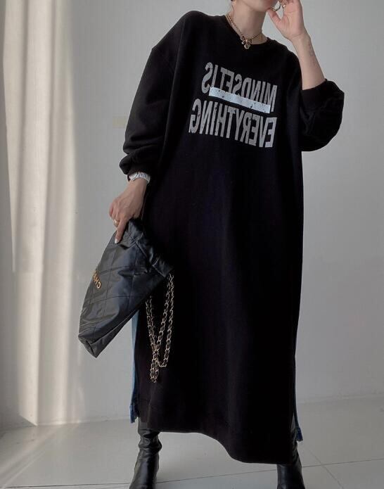 レディース トップス ワンピース ドレス ロング丈 クルーネック ドッキング チュニック